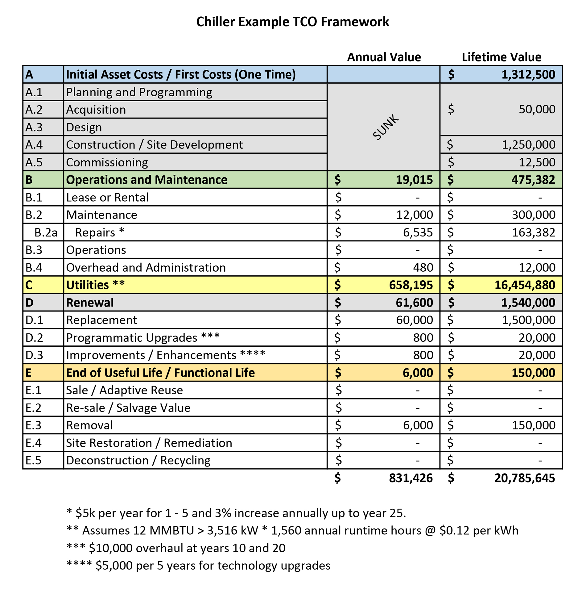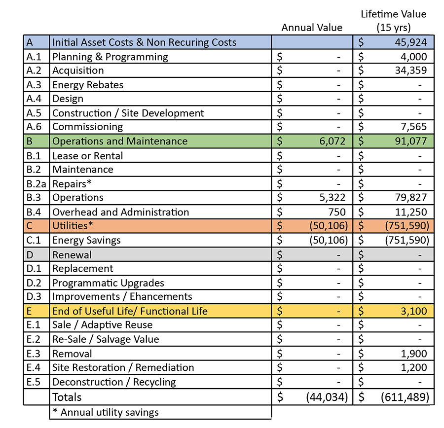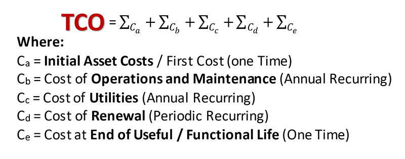 According to APPA, the APPA TCO-1000 standard is “a holistic approach to maximizing return on investment of managed physical assets that includes the summation of all known and estimated costs to include first, recurring, renewal/replacement, and end-of-useful life costs revised at critical decision points to aid in life-cycle asset management decisions.”